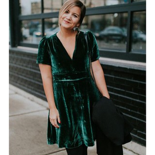 This madewell velvet mini dress ($150) can be dressed up with a leather jacket and mules for going out this fall.